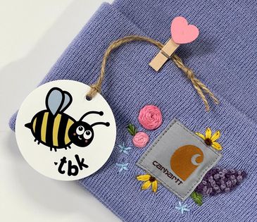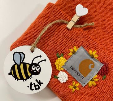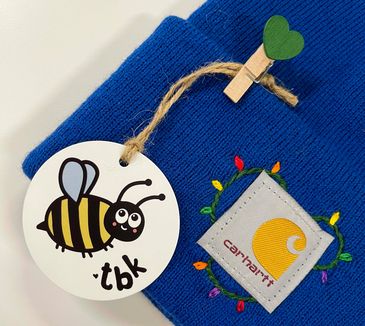 Our hand-embroidered, authentic Carhartt beanies (“Beenies”) will warm your head and your heart! Beenies are available in seasonal colors featuring seasonal stitches, like blooms for spring, sunflowers and mums for fall, and string lights for winter! Each Beenie is $60, features a TBK hang tag, and comes sealed in a protective TBK gift bag that’s plastic, waterproof, and reusable!
