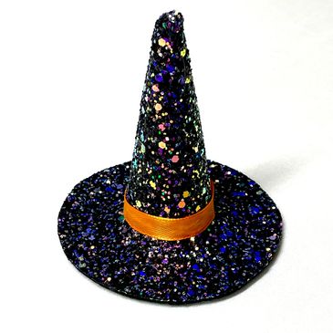 Featuring rosy cheeks, and a customizable witch/wizard hat and chest bow. Our handmade, sparkly black hats come adorned with an orange, purple or green satin ribbon. Chest bows are available in black, orange, purple, and green. The choices are all yours!